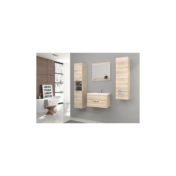 Zpříjemněte si hygienu sestavou do koupelny Lorieta. Při očistě bude vše potřebné na dosah ruky v objemných skříňkách, na účes mrknete do zrcadla a zůstane vám i dost místa na kartáče a čistidla. Vybrali jste si variantu s umyvadlem? Sestavu vám dodáme bez vyobrazené vodovodní baterie. Protože neznáme přesný typ zdiva ve vaší domácnosti, necháme výběr spojovacího materiálu k uchycení nábytku na stěnu na vás (v balení jej tedy nenajdete). Rozměry (š/v/h): vysoká koupelnová skříňka: 30/140/30 cm skříňka pod umyvadlo: 60/35/39 cm koupelnová skříňka: 30/105/30 cm zrcadlo (š/v): 60/55 cm Další parametry a vlastnosti: umyvadlo k dokoupení (š/v/h): 61/18,5/40 cm výškový přesah umyvadla nad deskou: 2 cm materiál umyvadla: konglomerát materiál: LTD + ABS úchyty: kov barevné provedení: dub sonoma