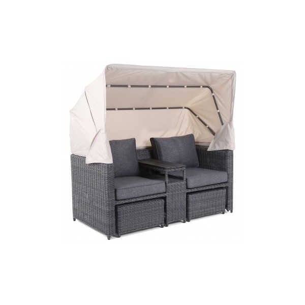 WPC = kompozitní materiály vyráběné ze dřeva a polymeru Rozměry (š/v/h): šířka: 163 cm výška: 87 cm hloubka: 80 cm Další parametry a vlastnosti: rozměry po rozložení (š/v/h): 163/160/80 cm výška sedu: 36/46 cm (s polštáři) sedák (š/h): 57/(60/48) cm opěradlo (š/h): 54/(38/40) cm materiál pohovky: lakovaný hliník + umělý ratan materiál stolu: lakovaný hliník + umělý ratan + WPC deska barevné provedení: šedá